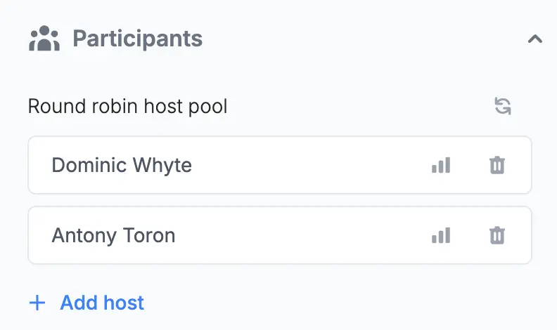 Create the form. Follow the quick steps here.Select Round robin and choose which hosts to add.2