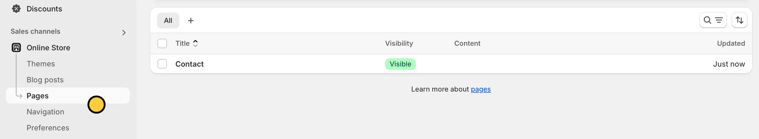 Online Store followed by Pages. Then, choose the page where you would like to insert the form into.