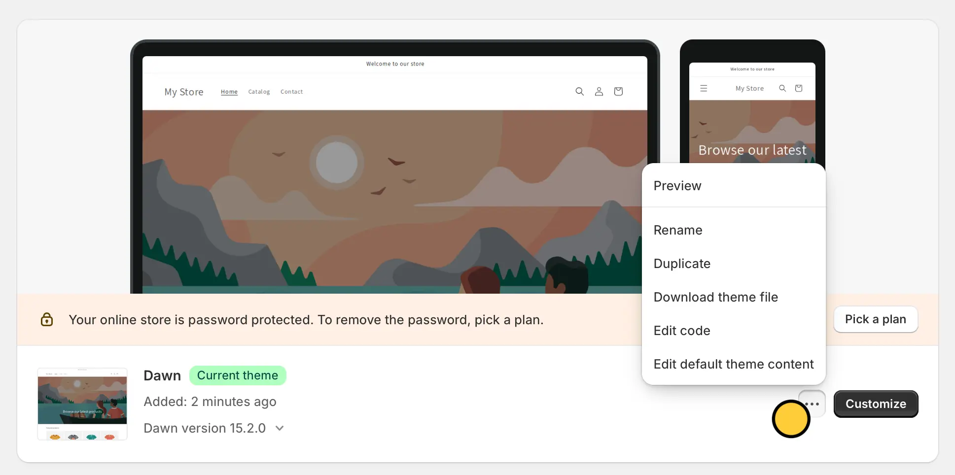 SelectThemes in the left menu under Online Store. Then, click ... and select Edit code.